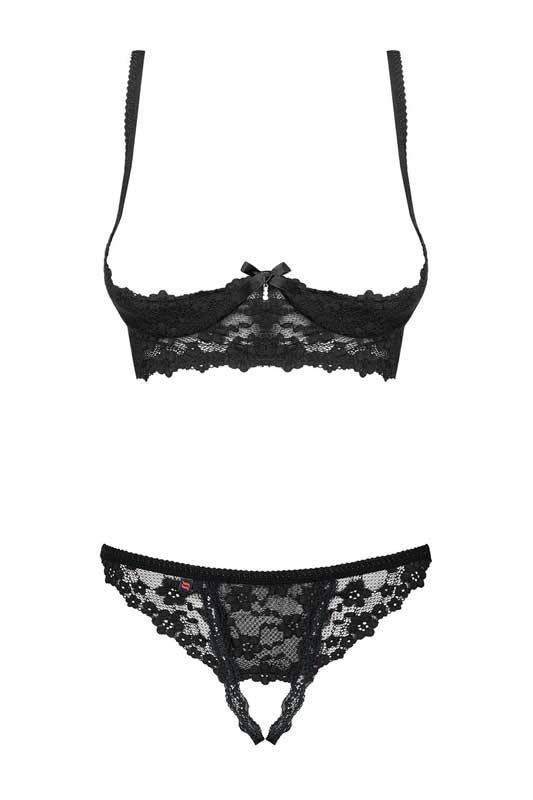 Dessous-Set schwarz mit Hebe-BH & String - Obsessive
