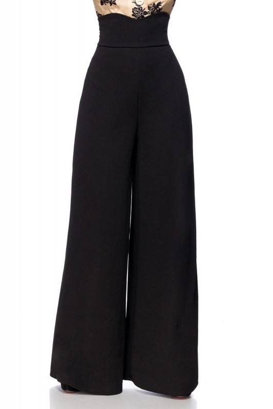 - Schwarzes Damen Marlenehose mit modisch hohem Bund